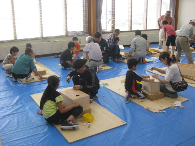 木工は初めてという方が多かったのですが、講師に教わりながら 本立てや小物入れなどを親子で協力して完成させていました。 出来上がった作品は末永く愛用されることでしょうね。 楽しい夏の思い出になったかな?