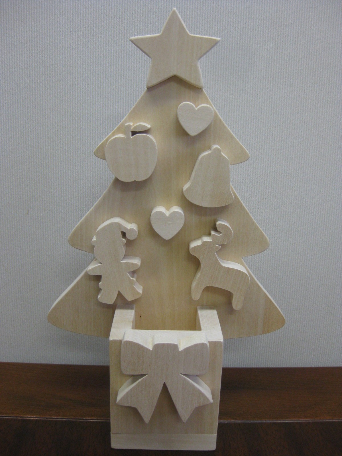 糸鋸で板を切り抜いて木製クリスマスペン立てを制作します。
