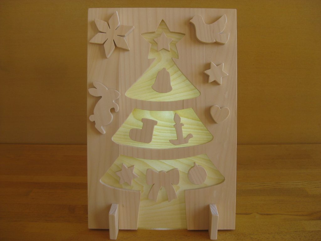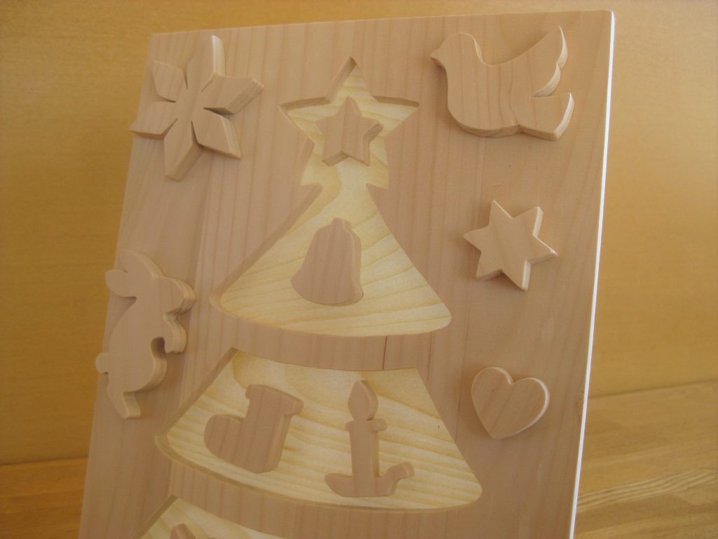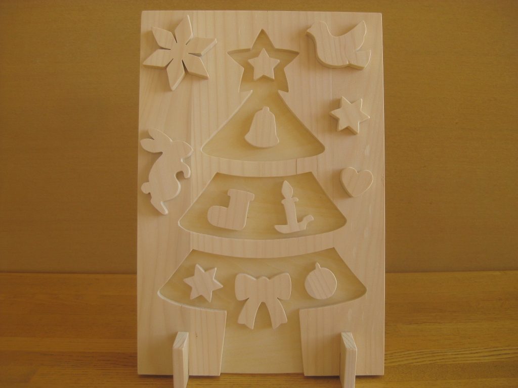 糸鋸で板を切り抜いてパネル型のクリスマスツリーを制作します。
