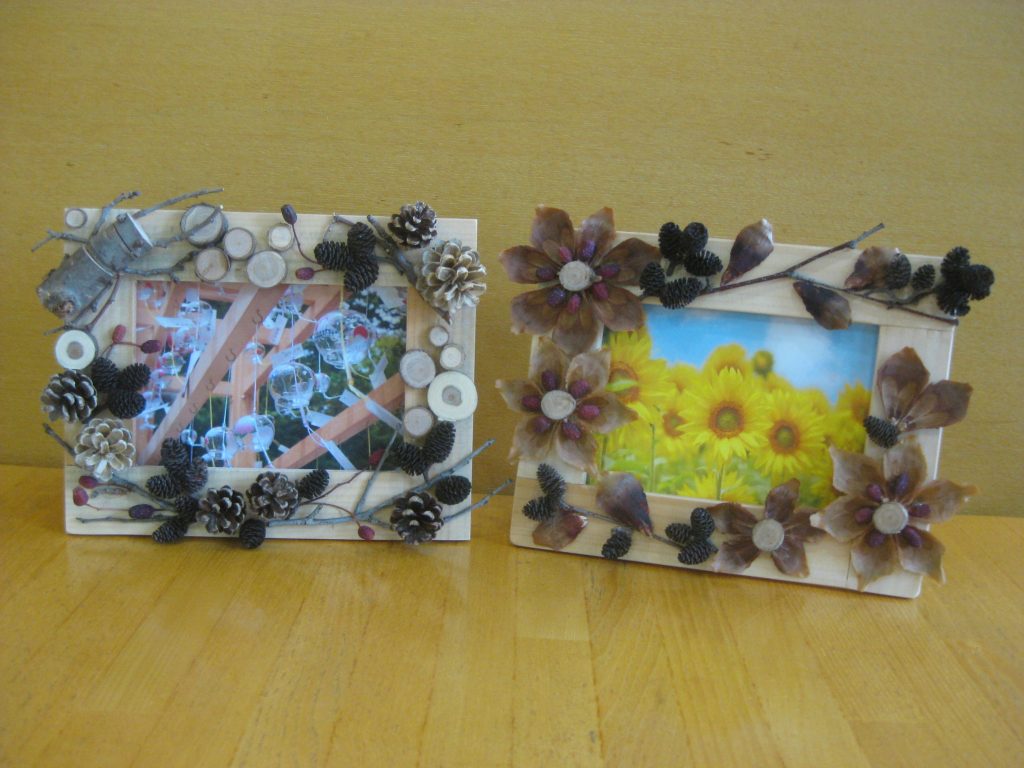 木のパーツを自由に貼ってフォトフレームを作ります。