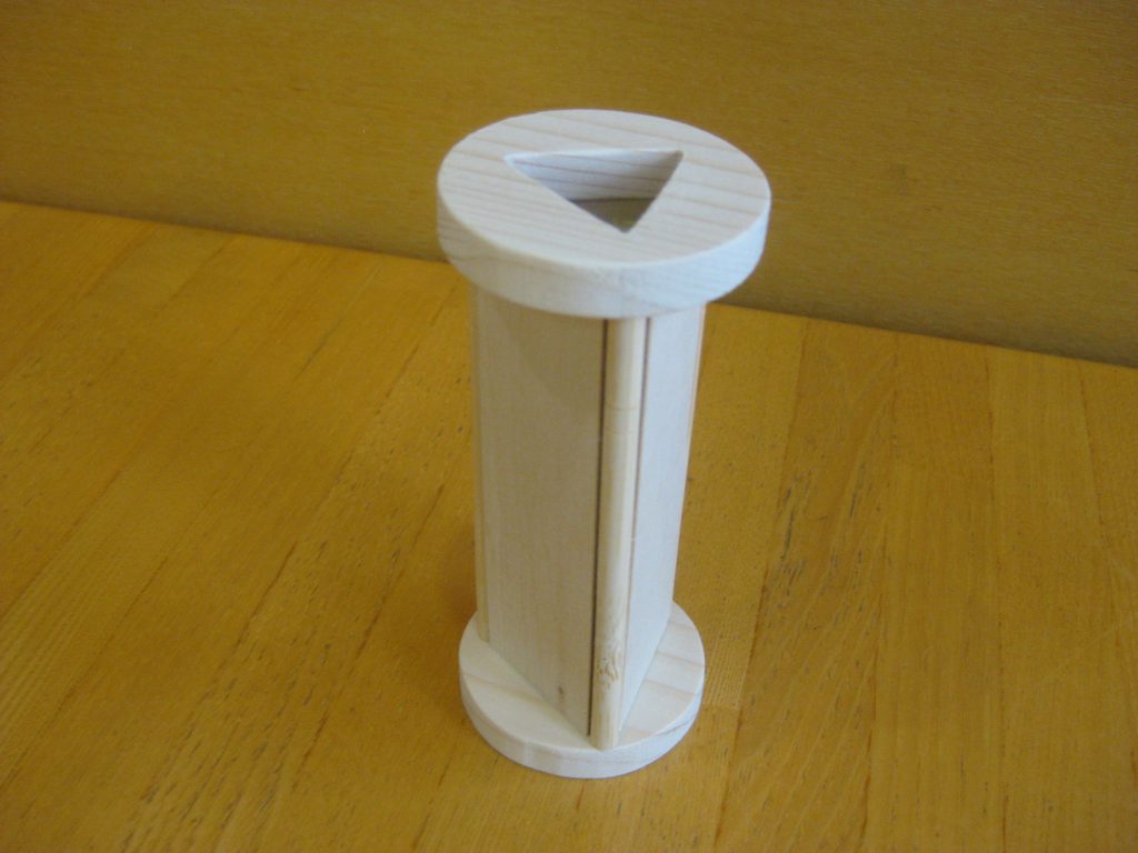木のパーツにキラキラビーズを入れて万華鏡を作ります。