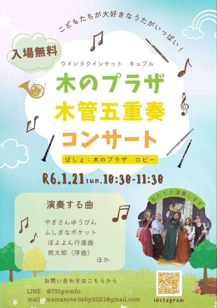 「ウインドクインテット キュプル」さんによるコンサートが開催されます。